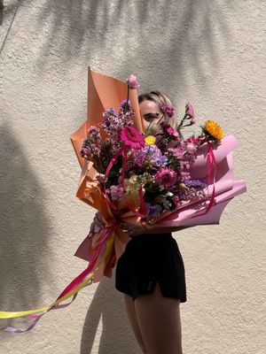A magical Ethereal take on flowers. Beautiful mixed flora in a rainbow wrap. The perfect gift for the artist.